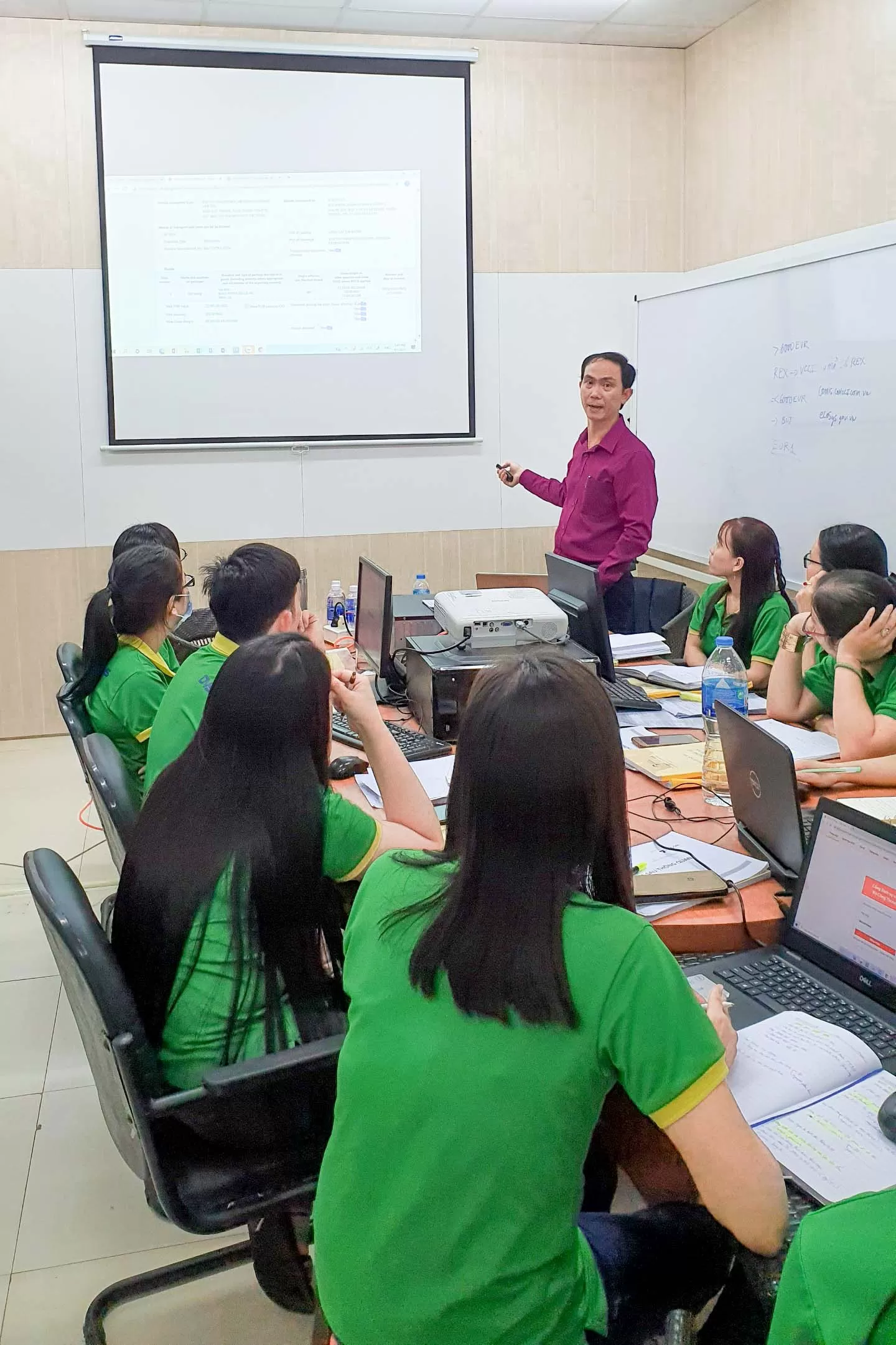 As the direct implementers of the teaching and consulting package, Mr. Le Thanh Tung (Deputy Director of the center) and Mr. Le Sai Gon (Director of SIMEX center) - delivered in-depth - practical lectures - close to the actual work in the field of customs procedures, especially in the processing sector (but special attention to customs procedures for this form, administrative penalty issues and how to handle, note about customs declaration and business records need to prepare for post-clearance inspection with processing form) for the employees of DONG VIET SHOE CO., LTD.